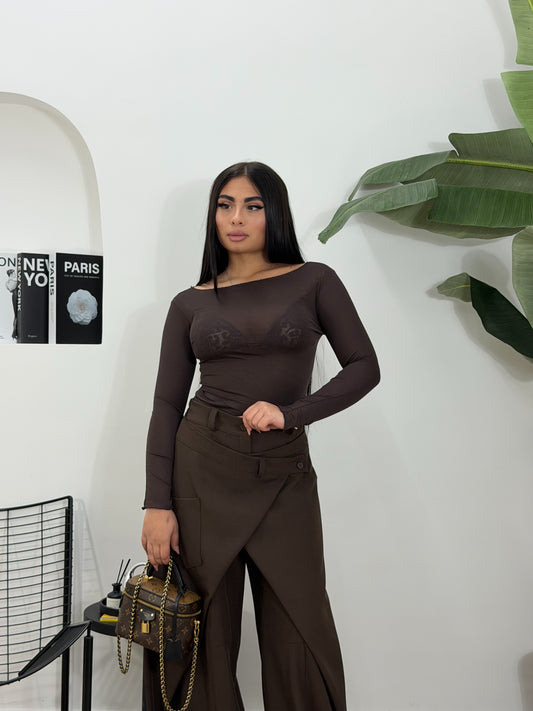 Maglia crop bottoncini marrone