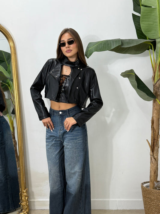 Chiodo crop nero -9021