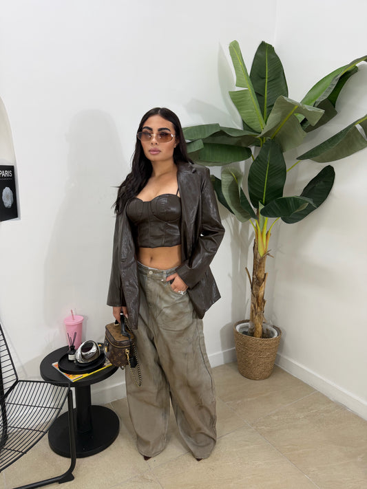 Corpetto in pelle marrone -58544