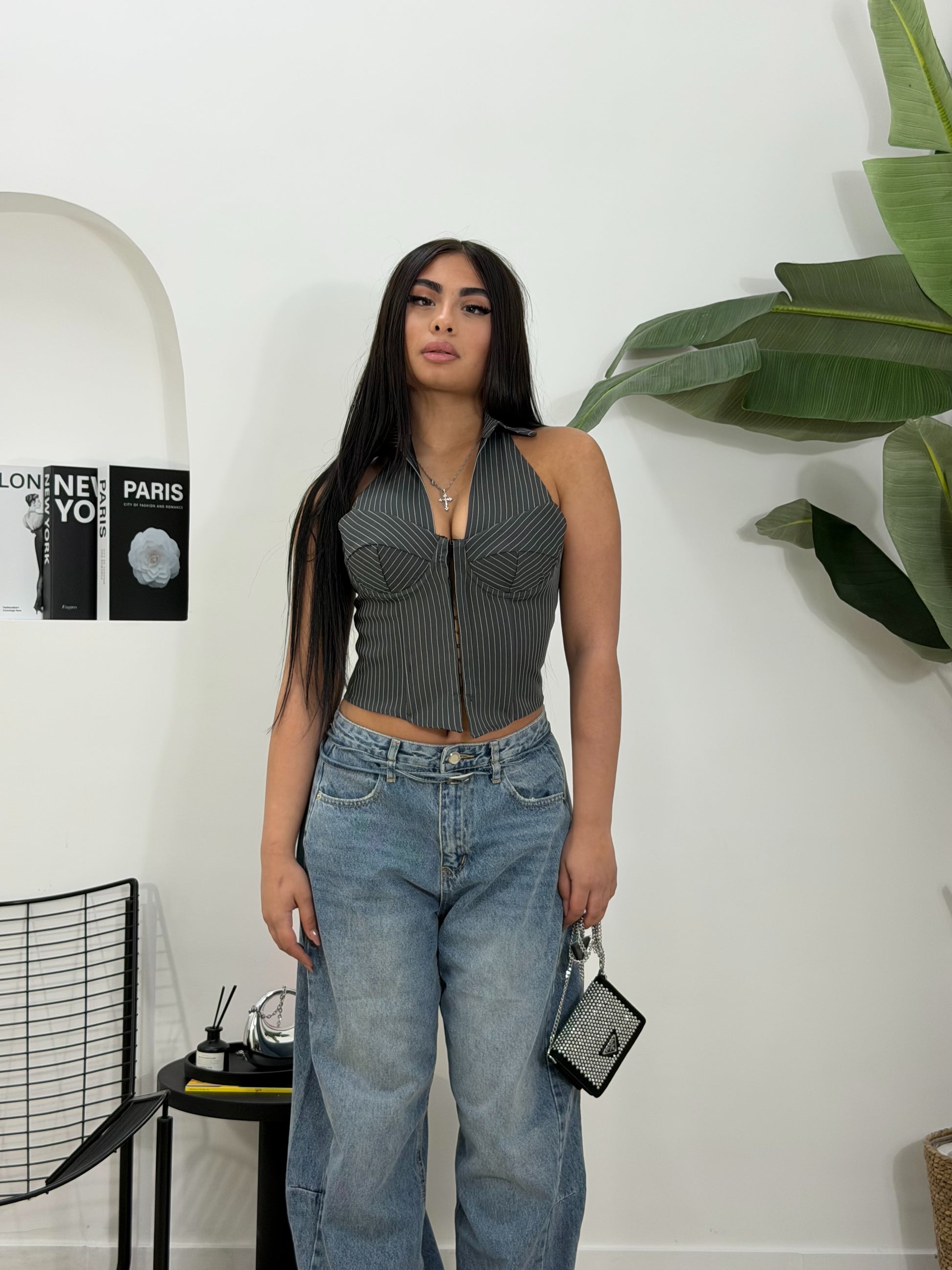 Corpetto gessato grigio