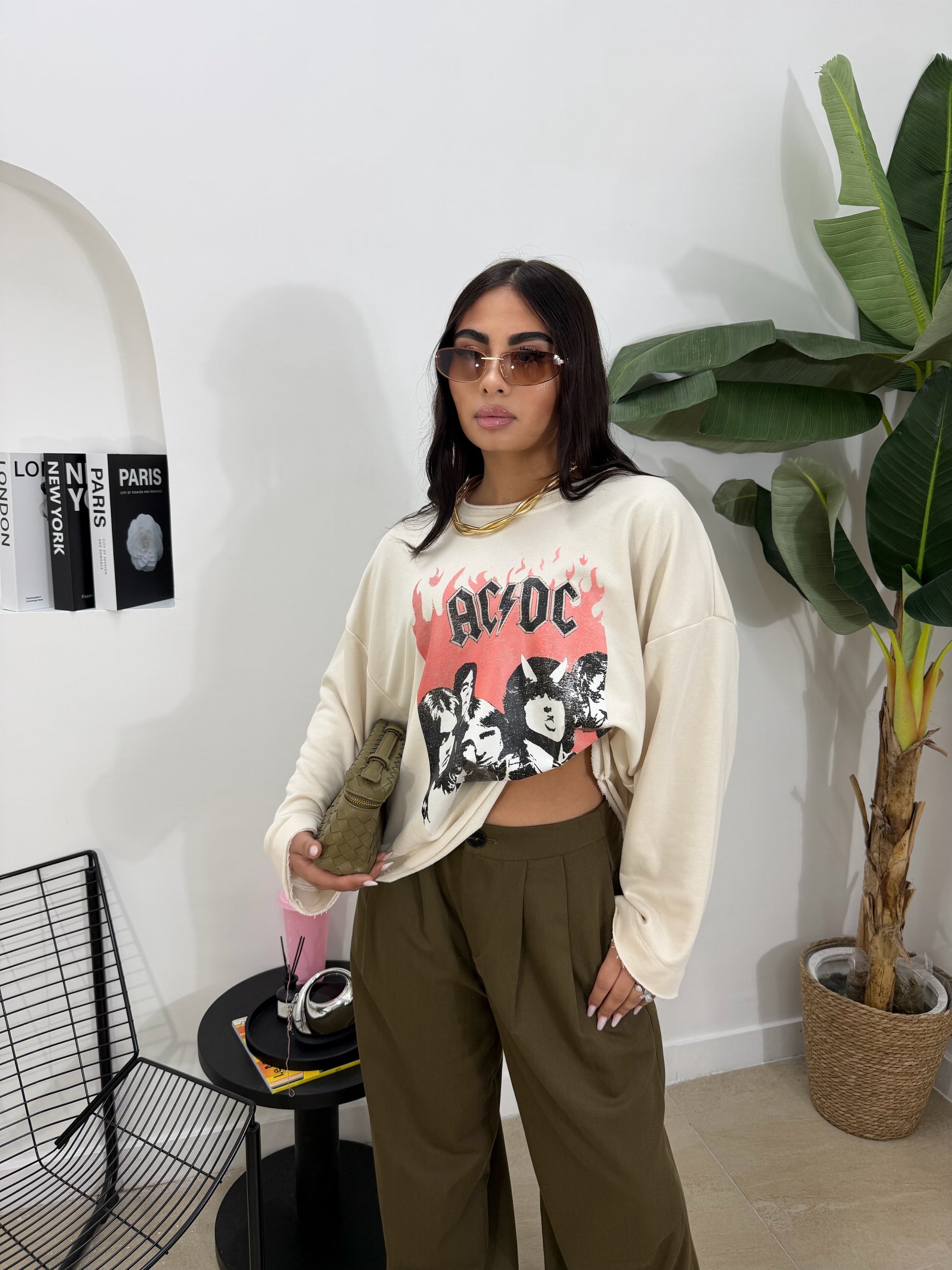 Felpa acdc crema -1686