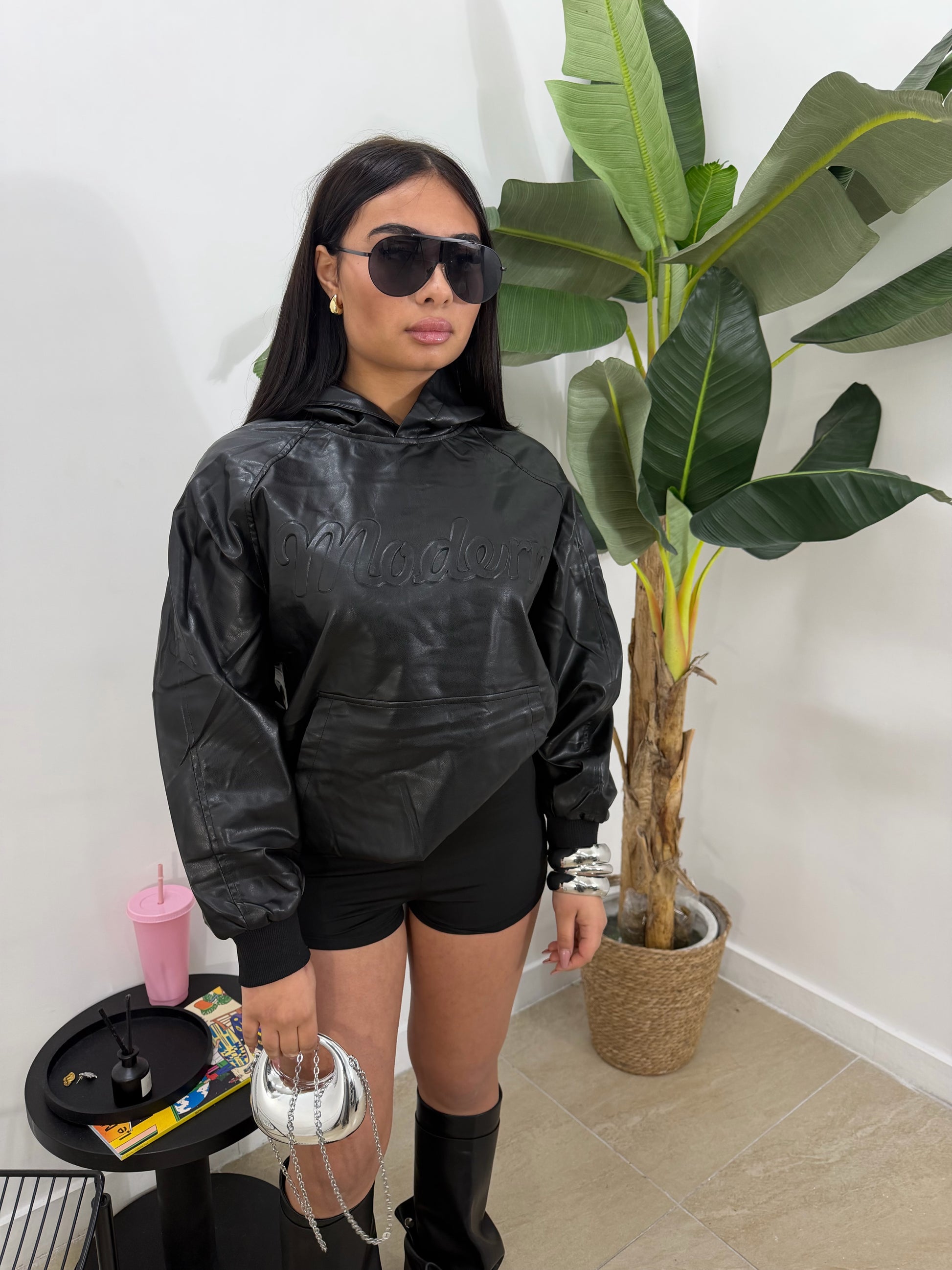 Felpa in pelle nera -15726