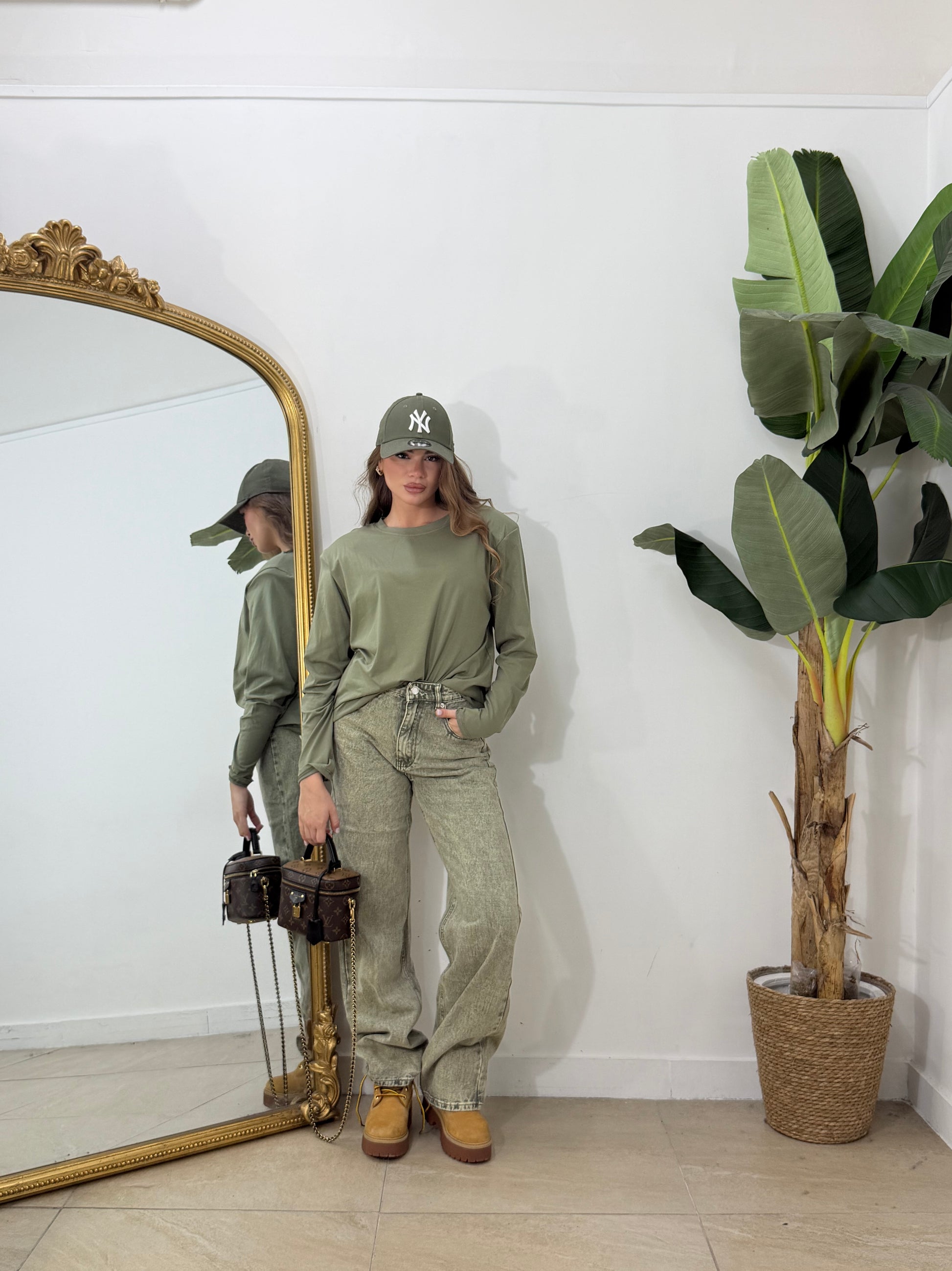 Maxi Shirt basic manica lunga con spalline verde militare