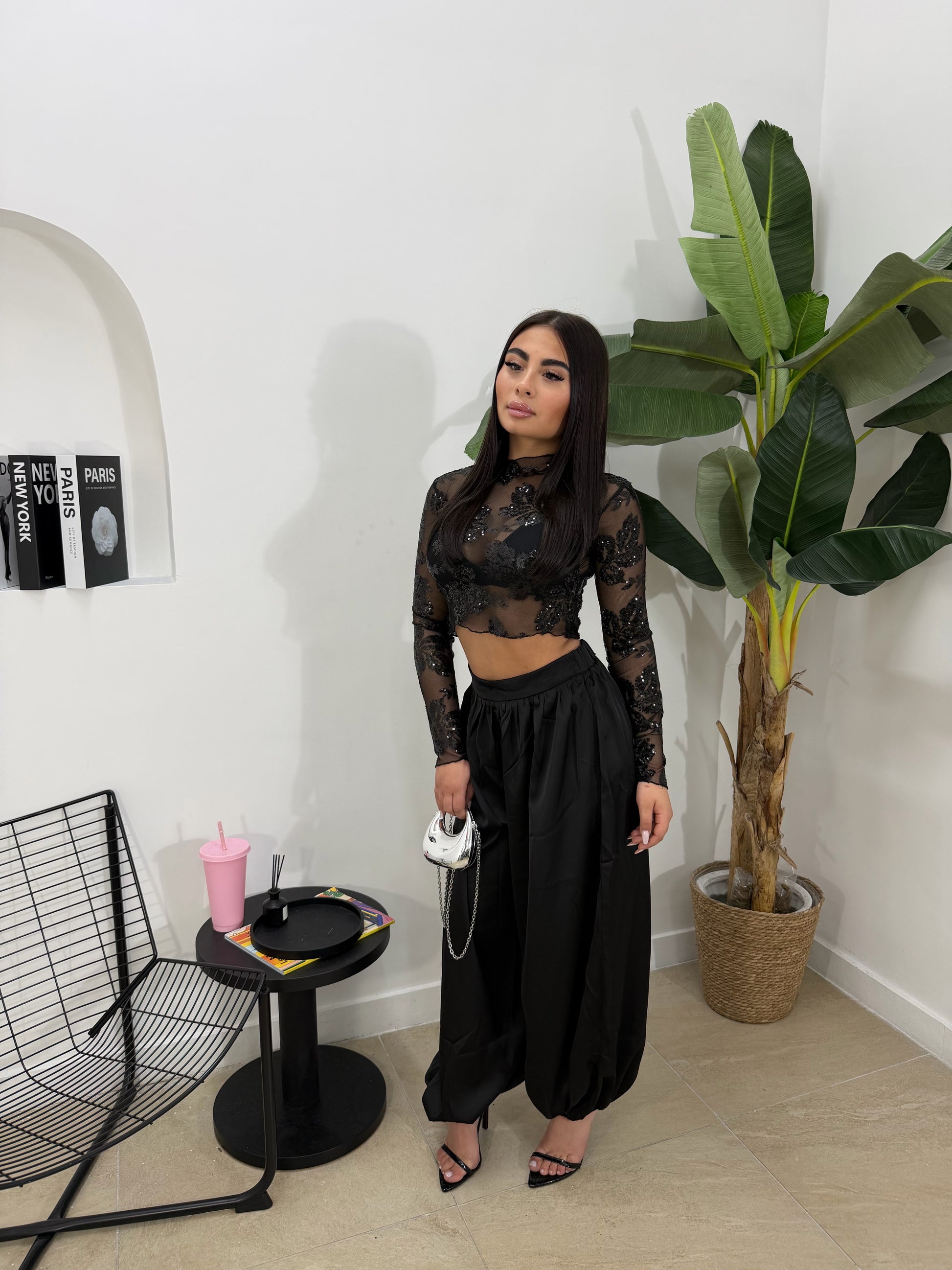 Pantalone satin nero -15861