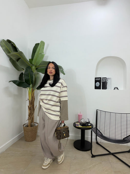 Maglia oversize rigata beige